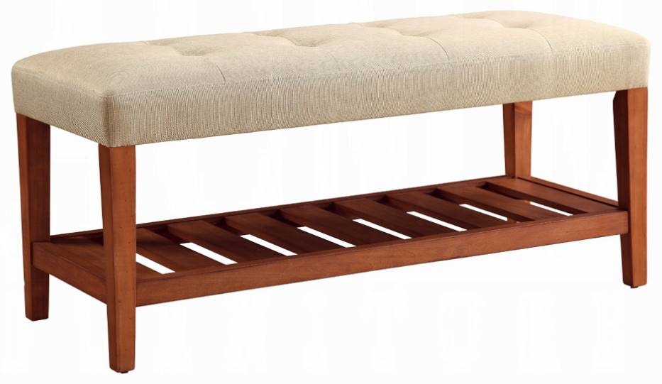 With simplistic lines and pulling from the craftsman era and tapered legs to add in a traditional style, the Charla bench with button tufted full box seat can easily complement any home styling decor. The added width of the bottom slats serves as a function shelf.Read More