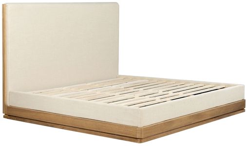 The Zoey beige upholstered eastern king bed blends contemporary style with practical design. Upholstered in soft beige fabric, it features 13 slats that eliminate the need for a box spring and a storage drawer with a smooth center metal glider. Sized for standard L80"xW76" mattresses.Read More