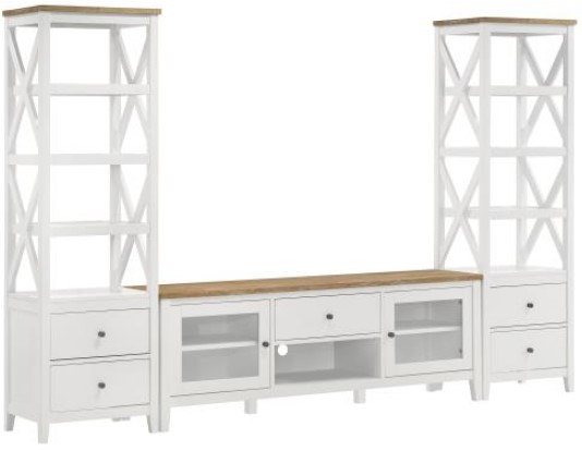 Includes: One (1) TV stand and two (2) media towers