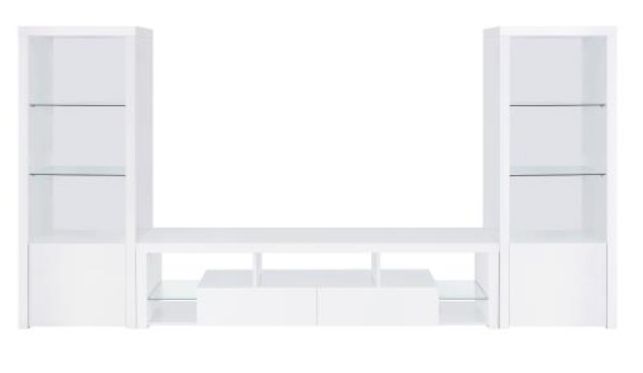 Elevate your entertainment arena with our sleek, modern TV stand. Drenched in a pristine glossy white-on-white finish, it radiates sophistication, accentuated by clear glass details. Its soft-close drawers ensure smooth operation, while glass shelves present a chic display option. Generous storage compartments cater to all your media needs.Read More