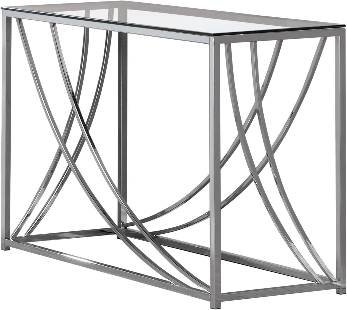 Full of clean lines and swooping curves, this modern sofa table adds depth to any living room or entryway. Bright and radiant, a shiny chrome finish dresses up the simple lines of the frame.Read More