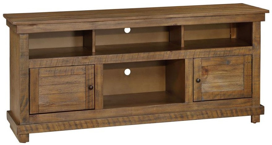 The Coaster® Payne 60" Distressed Brown TV Stand Media Console offers a rustic charm with its distressed brown finish. It features spacious storage with cabinets and open shelves, perfect for media components and accessories. This sturdy console combines style and practicality, enhancing your living room's decor.Read More