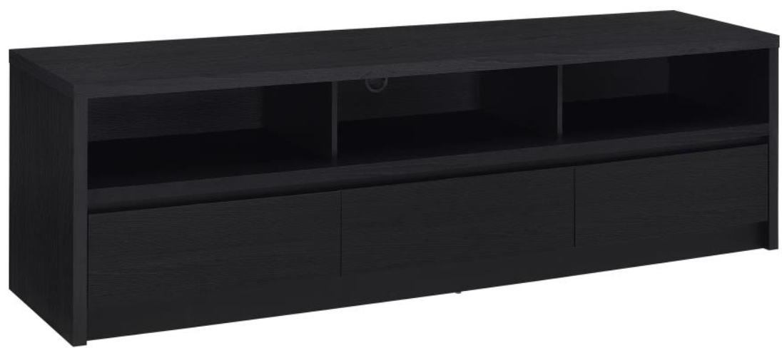 The Coaster® Rutland Black 78" TV Stand Media Console offers a sleek and spacious solution for your entertainment setup. With a modern black finish, it features ample open shelving and storage compartments for media devices, accessories, and decor. Its sturdy construction ensures durability, making it a stylish and functional addition to any living space.Read More