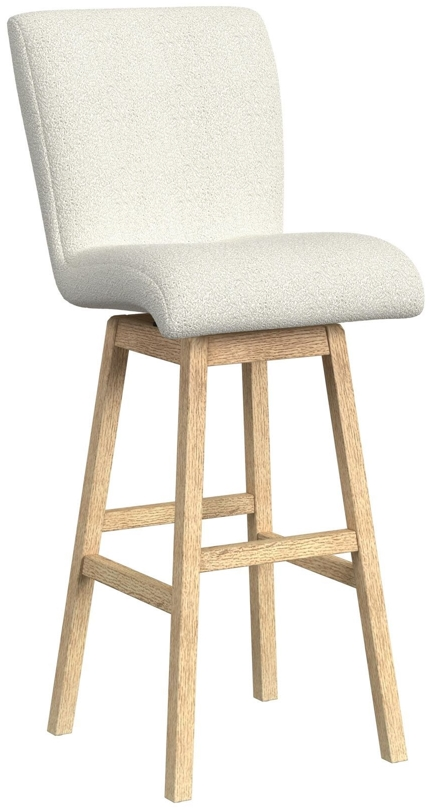 The Cambrie Upholstered Swivel Barstool accents your dining space with its uniquely modern style. The frame’s clean, natural finish creates a warm, inviting atmosphere, perfectly complementing the neutral upholstery’s soft, boucle texture.Read More