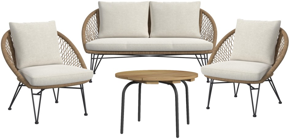 The Grace outdoor seating 4-piece set is crafted with a powder coated steel frame optimal for outdoor use and weather-resistant olefin upholstery. The table top is made with durable acacia wood ensuring longevity, while the understated metal legs.Read More