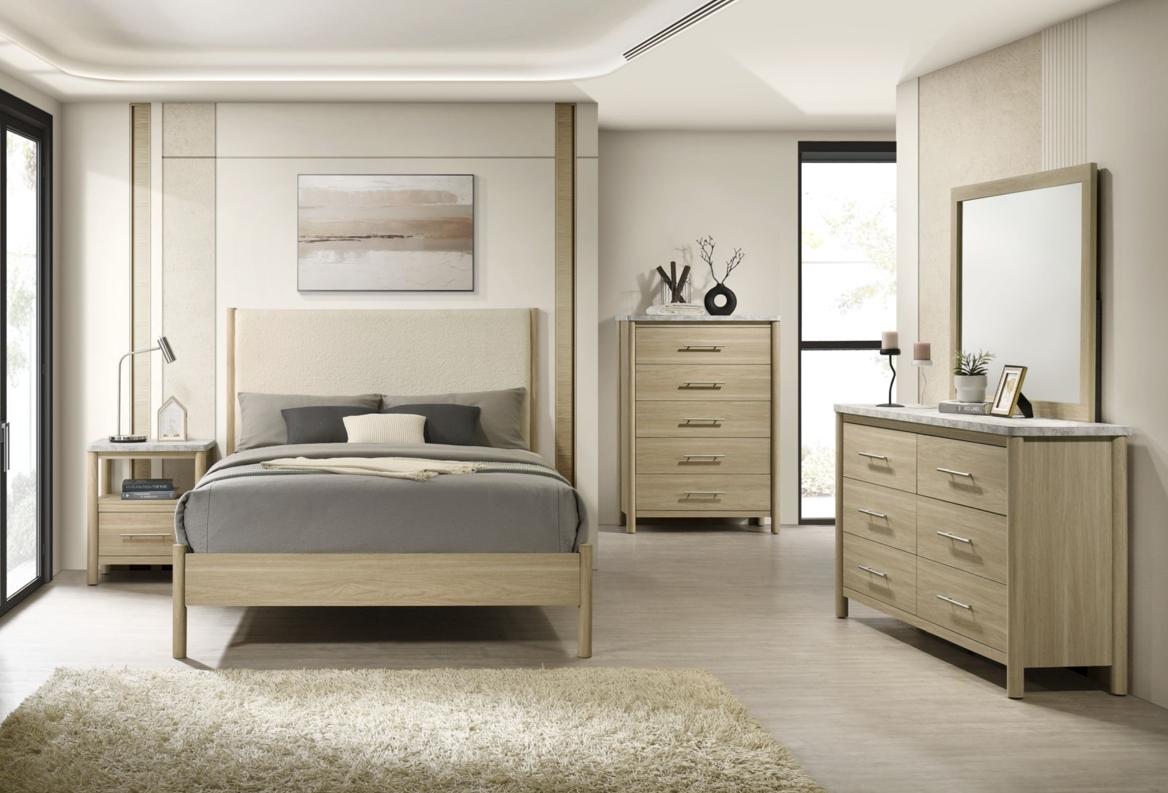 The Jonas nightstand pairs natural warmth with modern convenience, featuring a smooth natural wood finish and an elegant faux-marble paper top. Its compact design includes a single storage drawer and a built-in USB port, making it a stylish and functional bedside essential for contemporary living.Read More