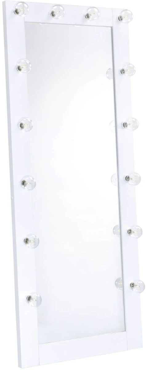 Work your look in front of this Lindy floor-length mirror, which is surrounded by glowing bulbs that put you in the best light. A crisp white finish gives it a glam touch, and the plug-in cord makes it super easy to install. Add this extravagant mirror to your bedroom or closet!Read More
