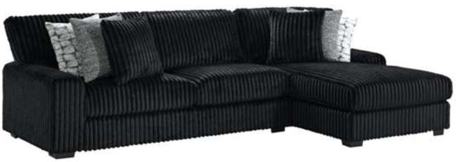 Outfit your home with the refined style of the Nightfall 2-Piece Sectional in Grand Cord Black. Built for lasting comfort, this piece features durable, 100% polyester upholstery and supportive foam cushioning. The sleek, black finish complements a variety of décor styles, while the included accent pillows enhance visual appeal.Read More