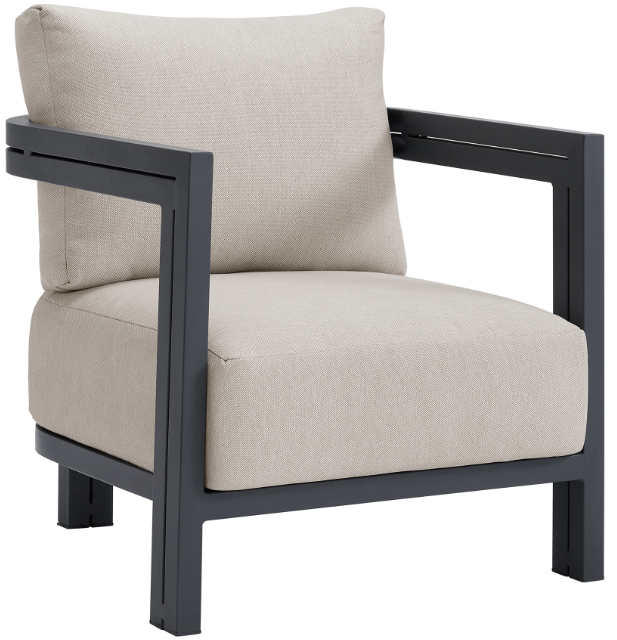 The Playa chair features quality materials optimal for outdoor use, like aluminum framing and weather-resistant olefin upholstery. Detachable cushions with memory foam ease maintenance while simultaneously forming clean lines with streamlined knife-edges. Angular open armrests create a refined, modern look and enhance moments of repose for your guests.Read More