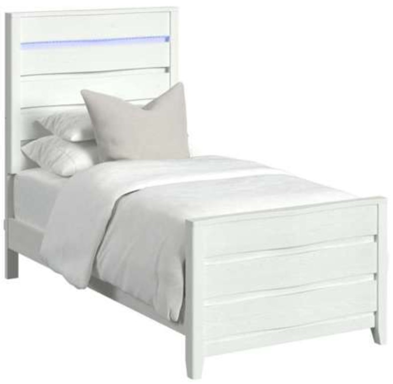 The Tobias Twin Bed with LED in white is a crisp, modern addition to your home. Designed with gently sloping horizontal slats that create a uniquely stylish aesthetic, this piece is as refined as it is practical.Read More
