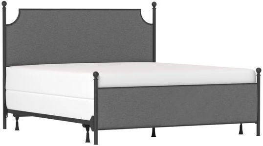 Turn your space into your sanctuary with this modern twist on a classic, regal silhouette adorned with graceful cast metal finials. Requires a box spring and mattress; not included. Assembly required.
