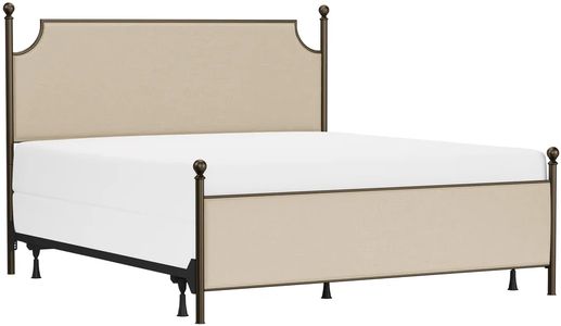 This sophisticated bed set elevates any bedroom with its clean lines and simple, elegant curves. Upholstered in a beige colored upholstery and constructed with a complementary bronze metal steel, this set fits seamlessly into a wide variety of color schemes and aesthetics.Read More