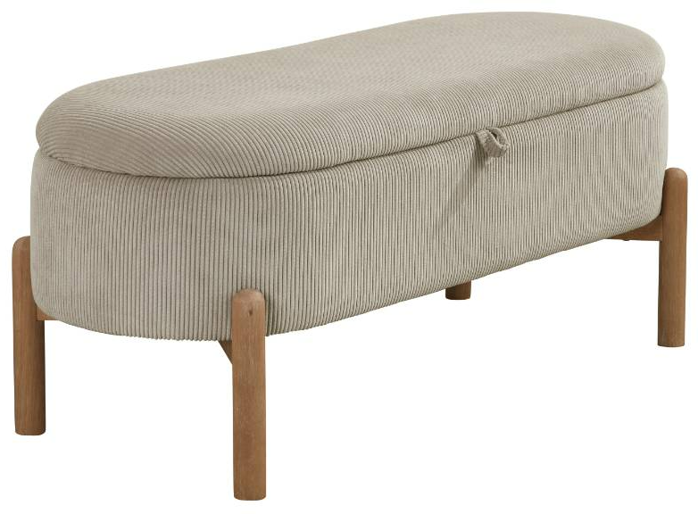 Add a touch of mid-century modern style and practical storage to your home with this taupe corduroy storage bench. Featuring a sturdy plywood frame, foam-cushioned seat, and soft corduroy fabric upholstery, this bench offers both comfort and style. The solid wood legs in a wire-brushed natural finish add a touch of warmth and elegance.Read More