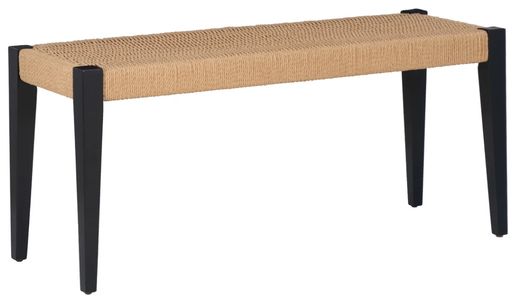 Transform family gatherings with this elegant mid-century modern bench seat, designed to be a delicate blend of transitional styling. Clean lines and sleek silhouettes pay homage to classic design, while a woven rope seat adds a touch of rustic charm. Finished in a rich, matte black, brown or natural wood.Read More
