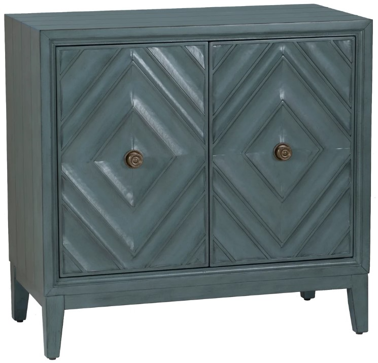 Bring a splash of style to any room with this stunning two-door cabinet. Finished in a vibrant blue lacquer, the eye-catching diamond design on the front adds a playful yet sophisticated touch.Read More