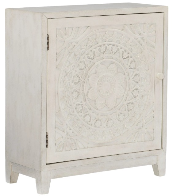 With a modern rustic look, the Grace Cabinet is a lovely décor choice for any room in your home. The perfectly neutral white antiqued finish highlights the resin medallion front of the cabinet door. The door opens to one fixed interior shelf for storage and organization.Read More