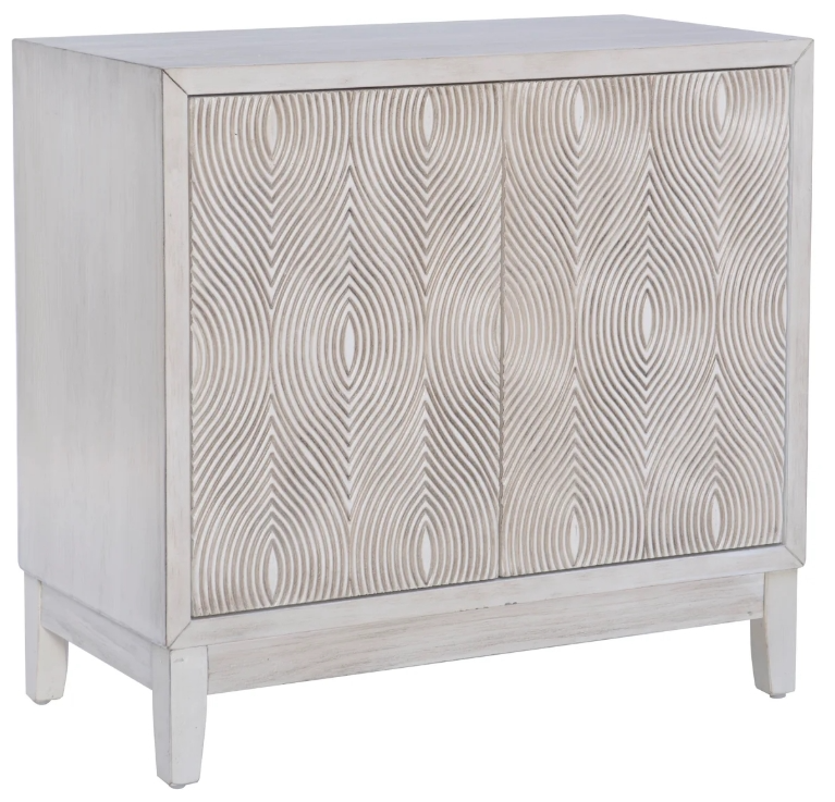Elevate your home decor with this statement-making accent cabinet, where bold design meets everyday functionality. The two doors boast an eye-catching abstract cutout pattern of swirling shapes, creating a dynamic sense of movement that adds visual intrigue to any space. Crafted with a sturdy, solid wood frame for lasting durability.Read More