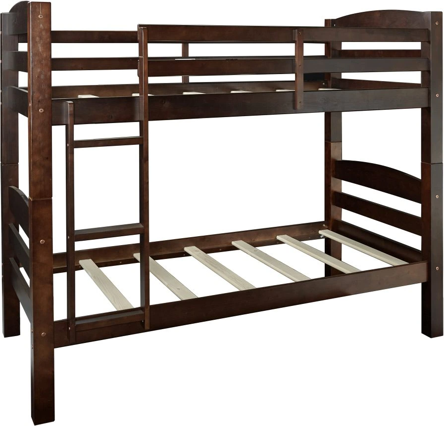 The Porter espresso twin‑over‑twin bunk bed showcases design in a rich espresso-finish wood frame. It features a built-in ladder, curved slat detail on headboard and footboard, and heavy-duty slats that support mattresses without a bunkie board.Read More