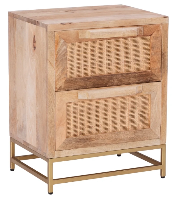 Simple and geometric, this two-drawer side table offers versatile function without sacrificing distinctive style. Real cane from rattan creates natural texture while a metal frame in black or gold adds a crisp modern line to the base.Read More
