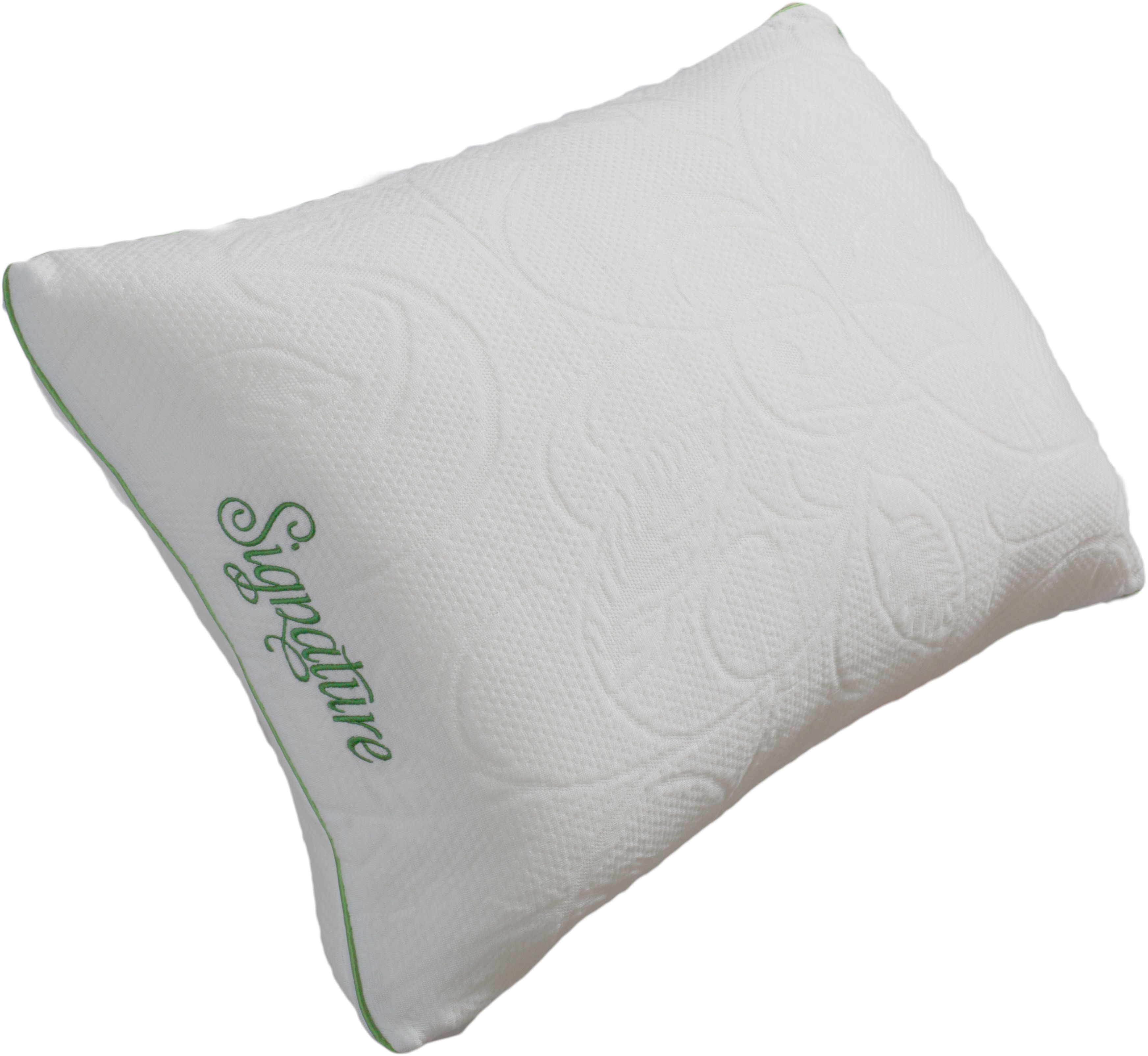 The Natural Signature Pillow features botanic Tencel lyocell fabric and shredded memory foam pillow fill for premium head and neck support. 18 oz. of medium firmness shredded memory foam pillow fill provides loft and compression, perfect for back sleepers or those who prefer a medium density pillow.Read More