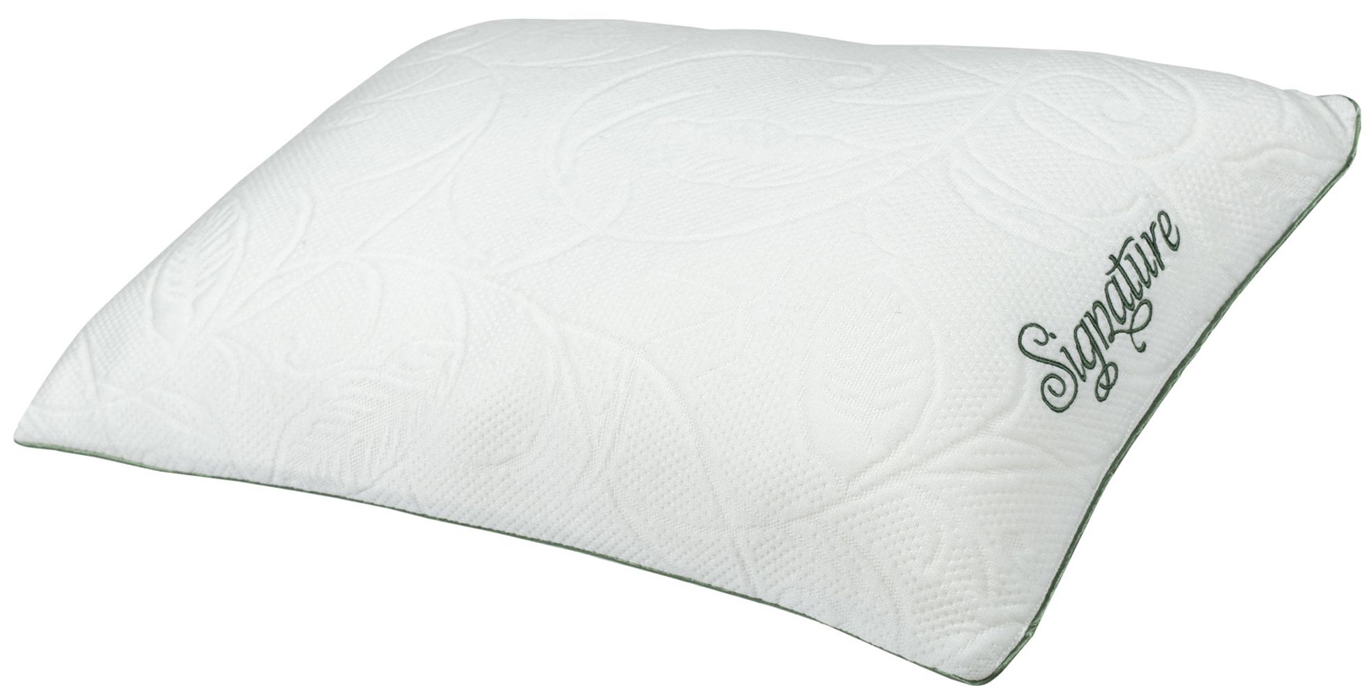 The Natural Signature Pillow features botanic Tencel lyocell fabric and shredded memory foam pillow fill for premium head and neck support. 14 oz. of soft shredded memory foam pillow fill provides soft loft and compression, perfect for stomach sleepers or those who prefer a softer pillow.Read More
